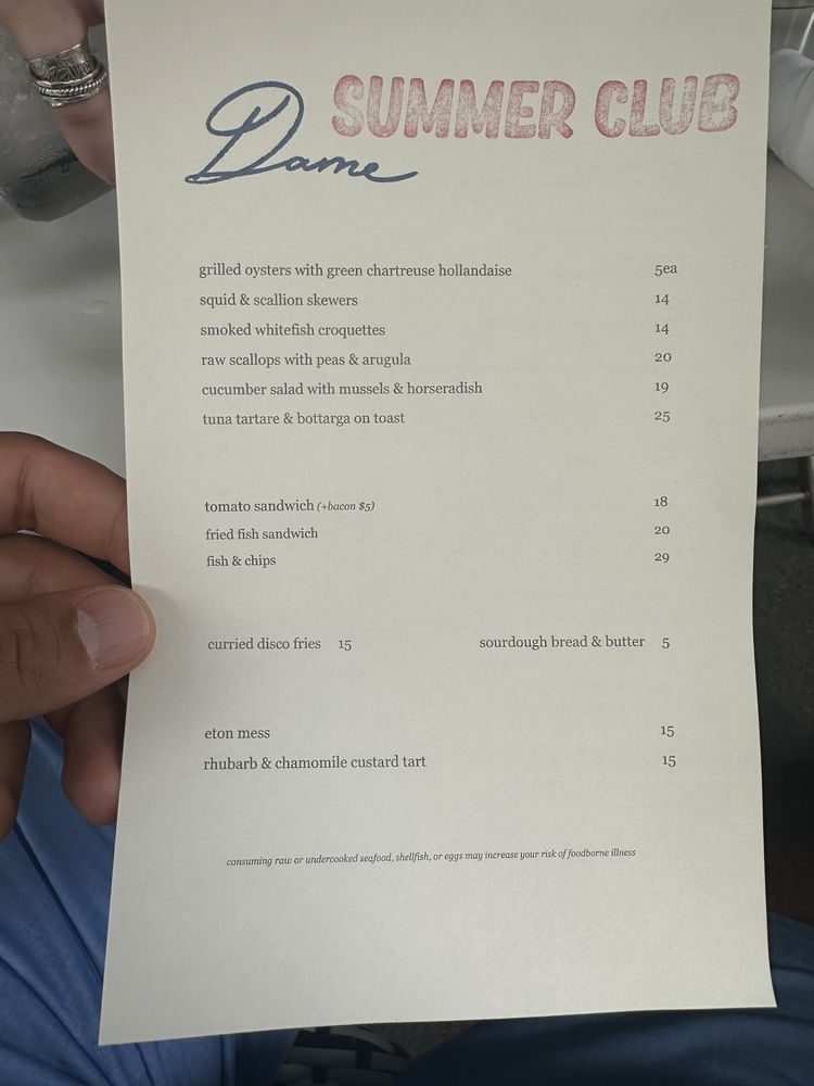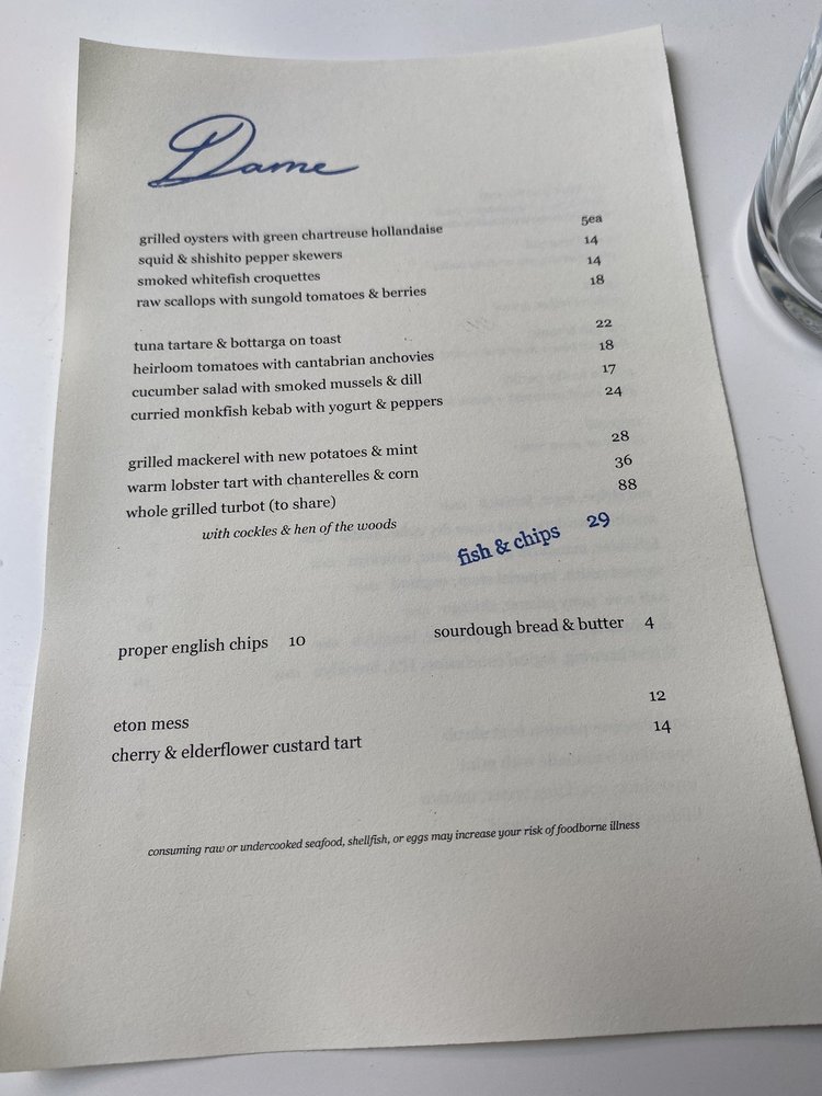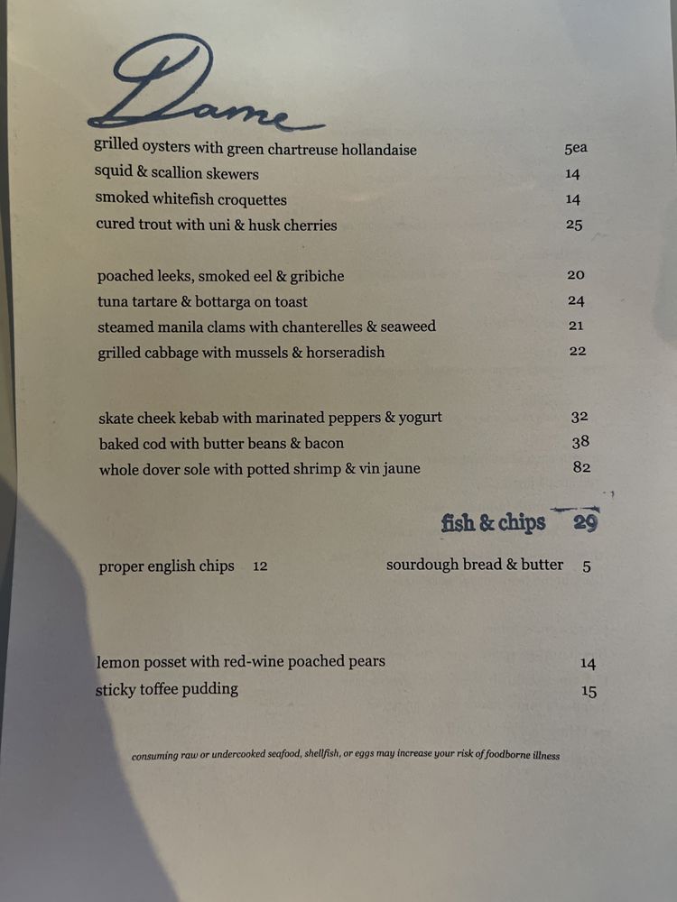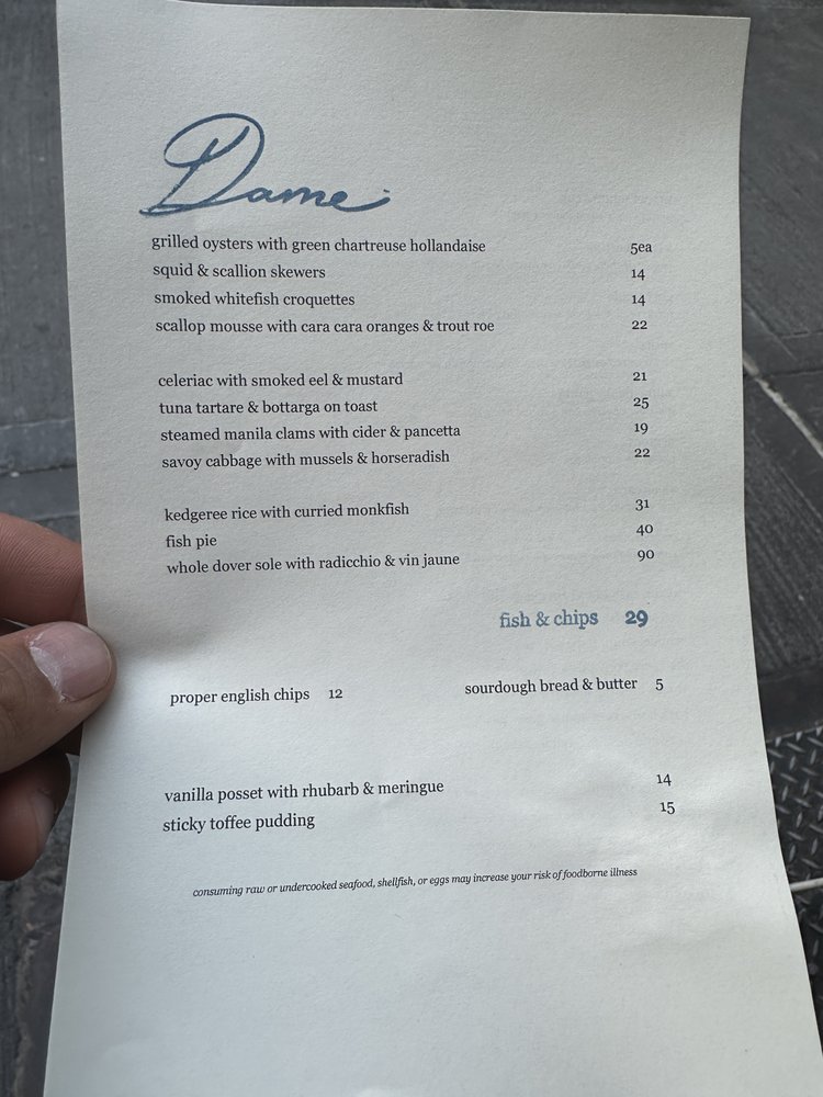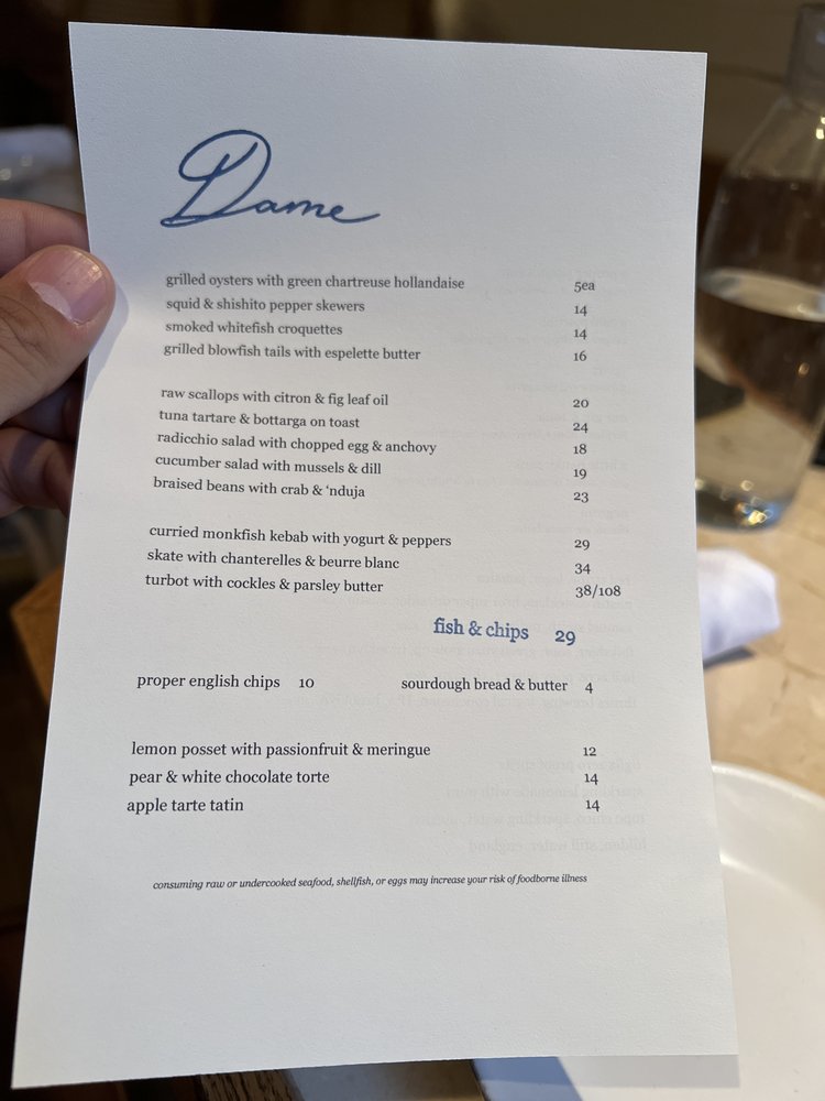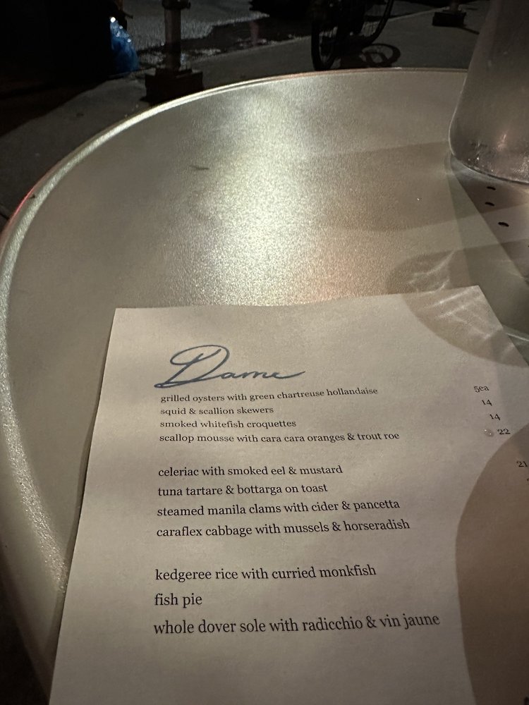 Introducing the menu of Dame New York, a cozy seafood bar located at 87 MacDougal St, New York, NY. This charming eatery is a treasure trove for seafood enthusiasts, boasting an array of meticulously crafted dishes that harmonize flavors and textures.